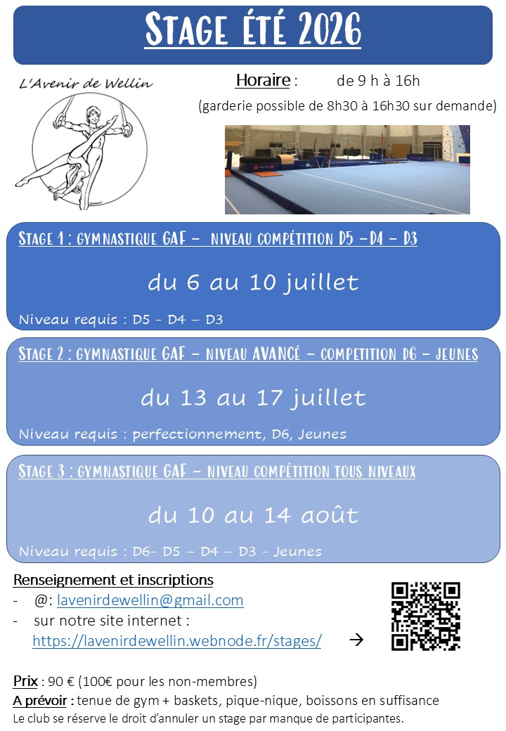 Stage 1 : du 6 au 10 juillet 2026 (niveau D5-D4-D3)
